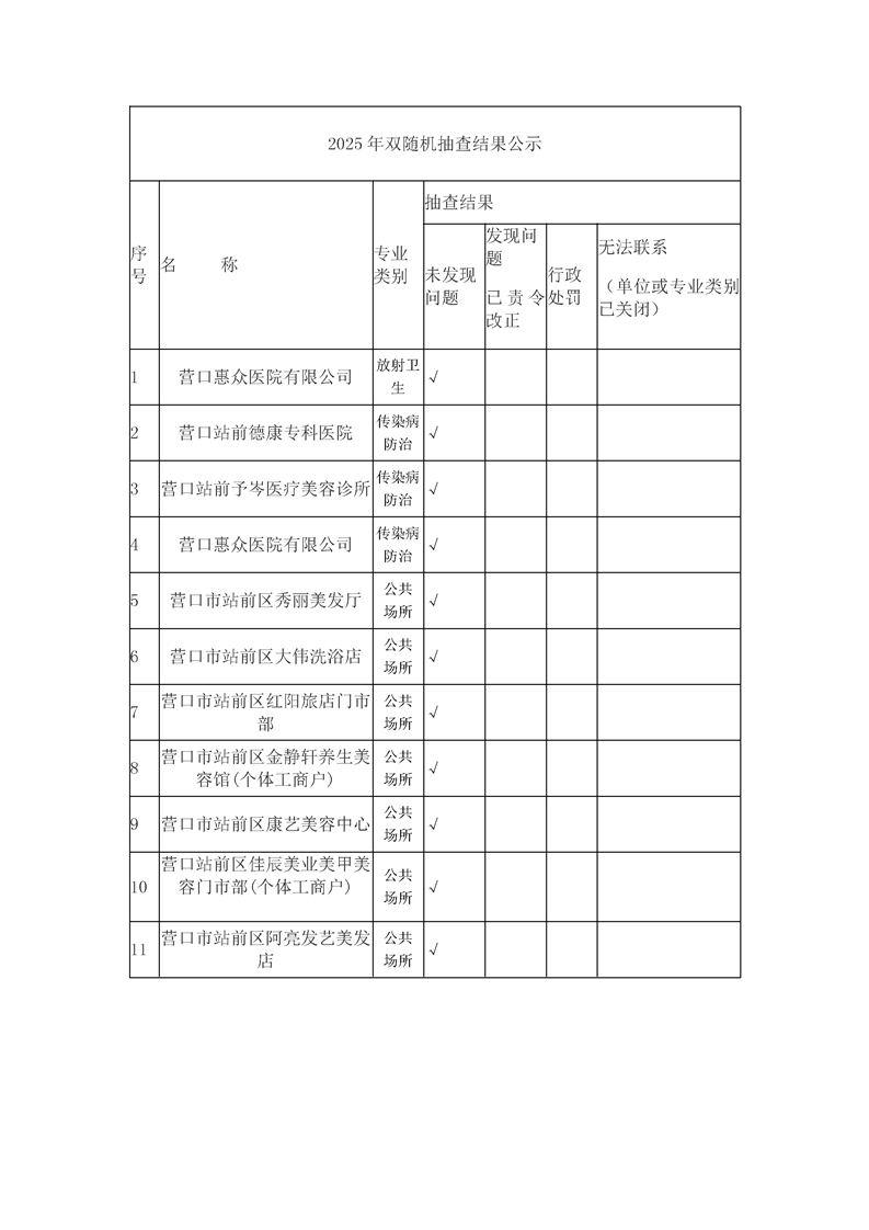 2025年双随机抽查结果公示