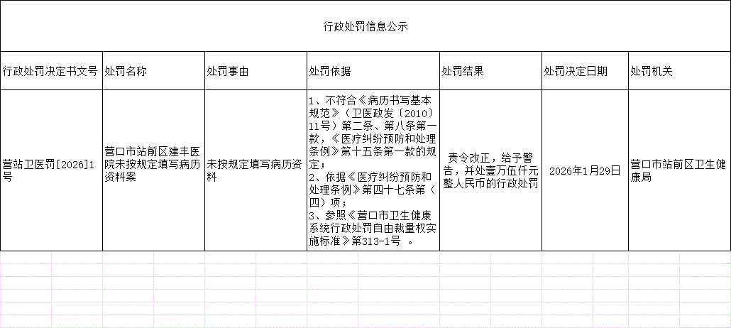 营口市站前区建丰医院未按规定填写病历资料案