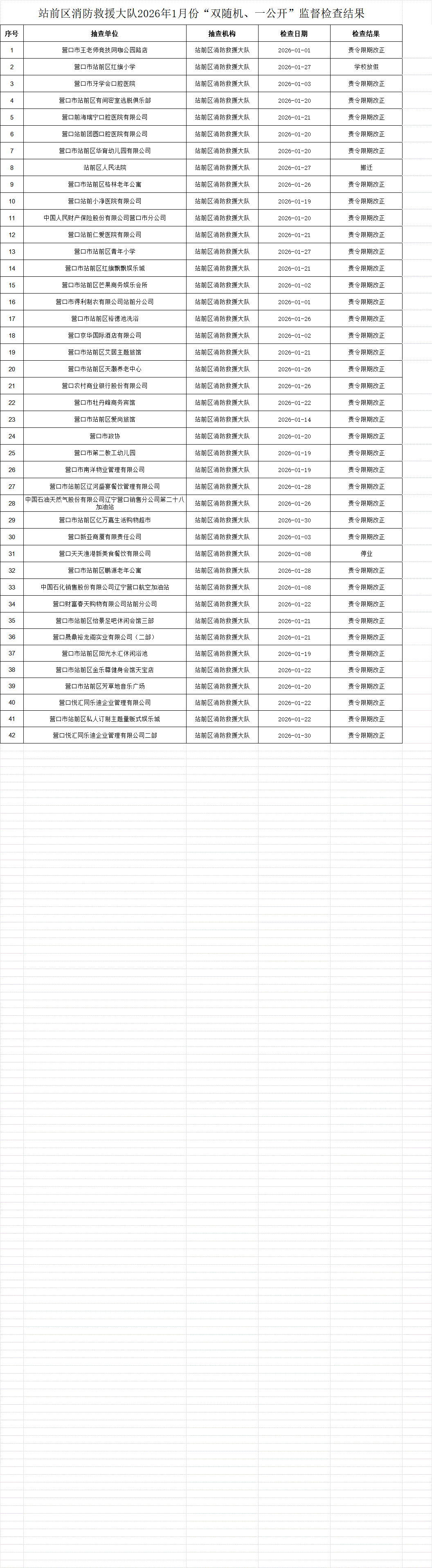 站前区消防救援大队2026年1月份“双随机、一公开”监督检查结果