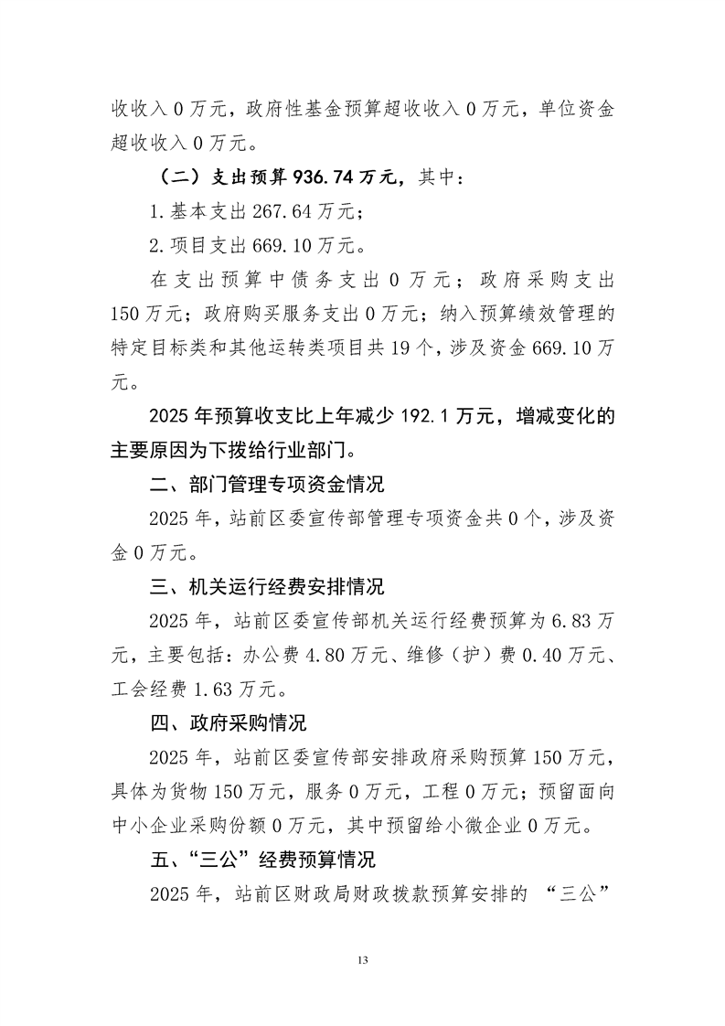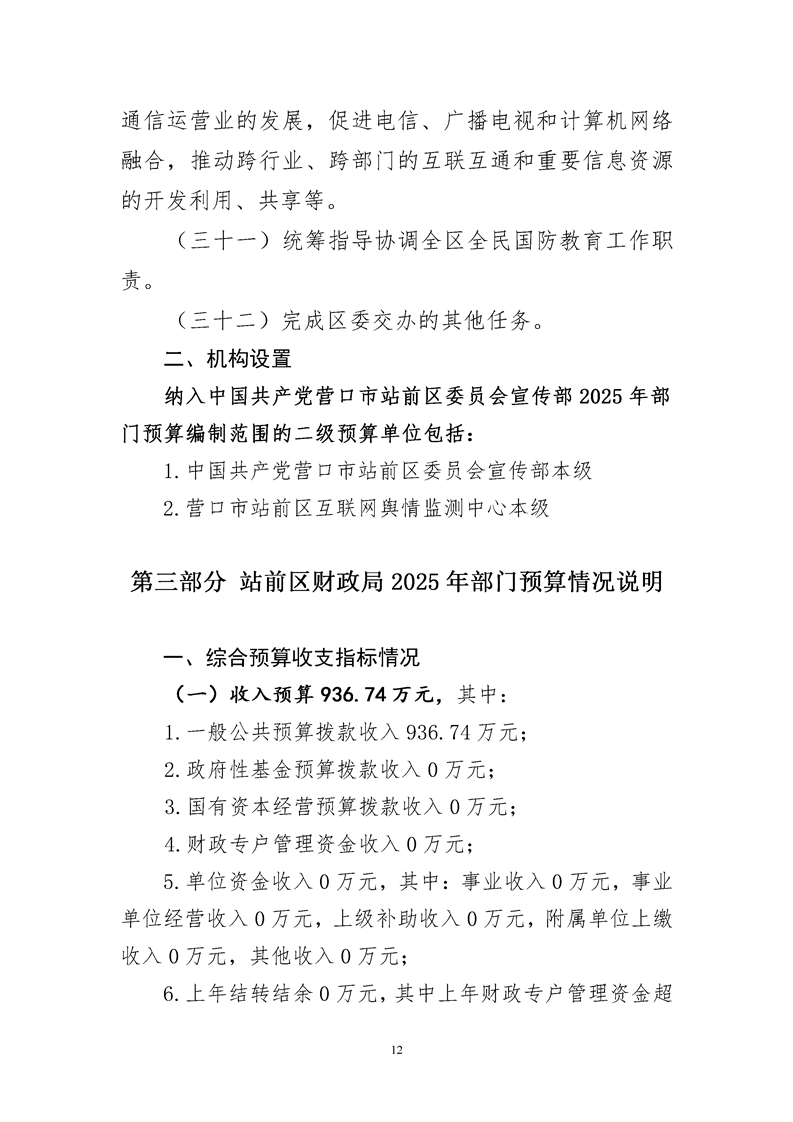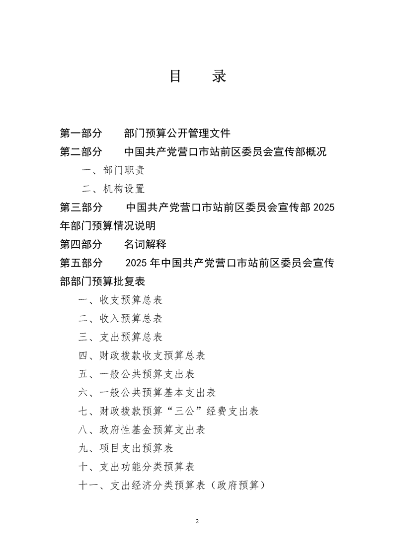 中国共产党营口市站前区委员会宣传部2025年度部门预算